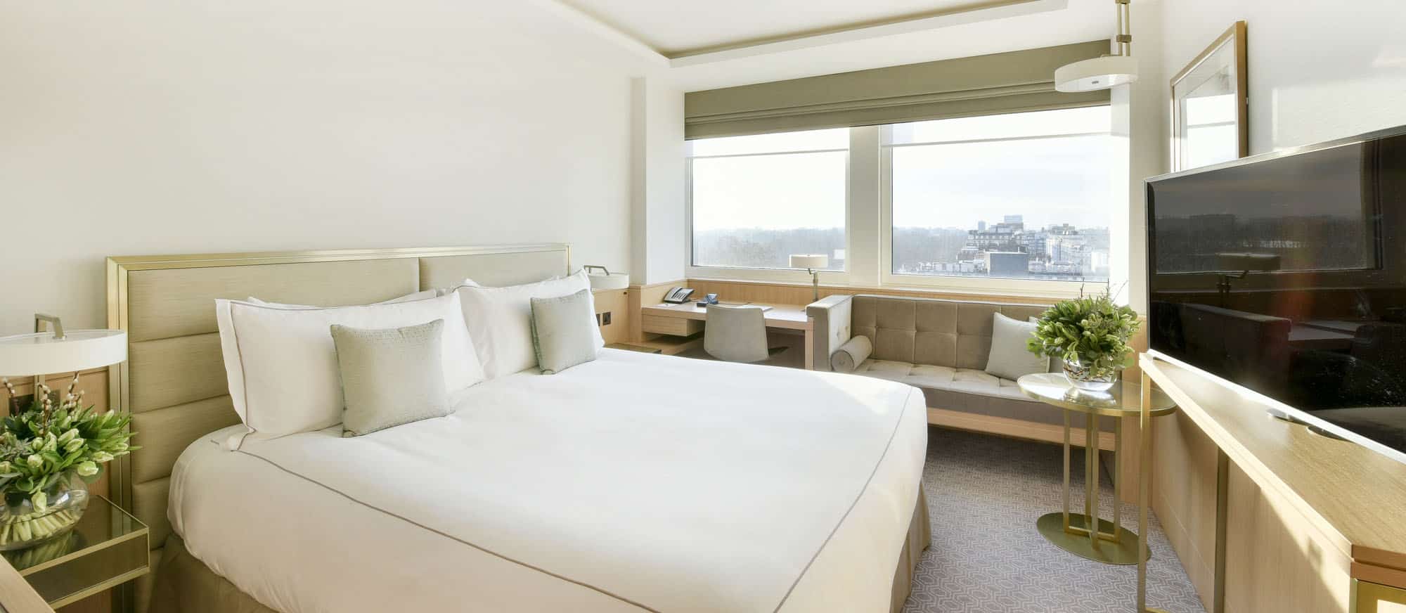Experience the epitome of luxury and comfort in our Deluxe Superior rooms at Royal Lancaster London. Nestled between the 8th and 14th floors, these thoughtfully designed rooms offer spectacular views of the iconic London skyline, blending timeless classic style with modern amenities. Each room features a generous 22 square meters of space, a sumptuous 1.8m king size bed dressed in luxurious linens, and a sleek 40-inch smart TV with international channels. The Carrara marble bathroom invites you to unwind with a rainfall shower and underfloor heating, complemented by indulgent White Company toiletries. Whether you’re here for business or leisure, our Deluxe Superior rooms provide the perfect sanctuary after a day exploring Hyde Park or the vibrant city life beyond.