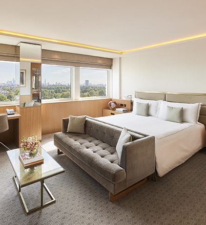 Our elegant Executive rooms are comfortably spacious, featuring a plush king size bed and comfortable seating area, offering plenty of space to relax and escape the hustle and bustle of London. The far-reaching views across Hyde Park and the iconic London skyline will make your stay unforgettable!